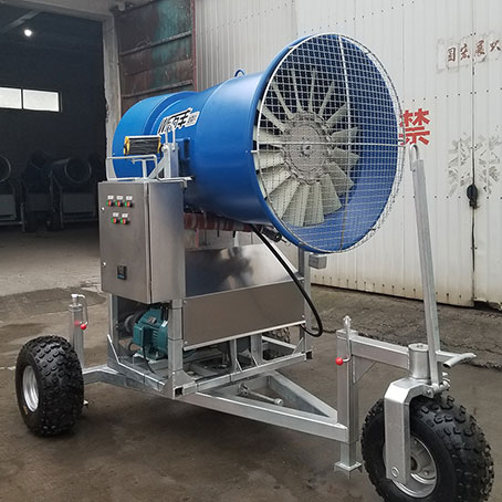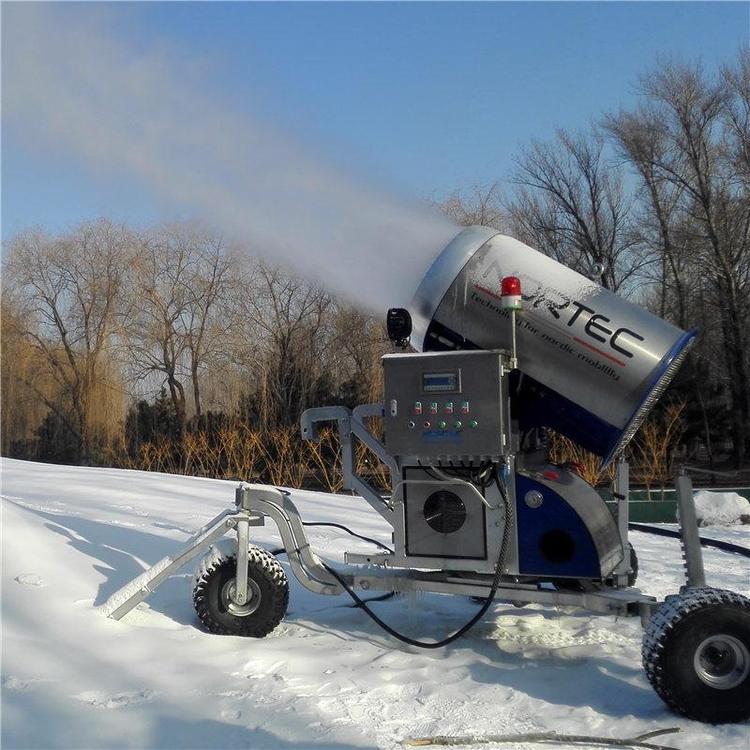 造雪機是在0℃的蒸發(fā)器上結(jié)成冰,通過冷卻的空氣輸送到滑雪道方式的。受大氣溫度影響的嶄新造雪系統(tǒng)。人工造雪機是受氣候的影響,造雪機造雪氣溫必須達到零度以下,保持一定的水量才可以造雪。造雪是一定要看好天氣和空氣的干濕度,造雪需要380V電源,造雪機造雪的水溫不能超過5度,氣溫低于0度。不要頂風造雪。