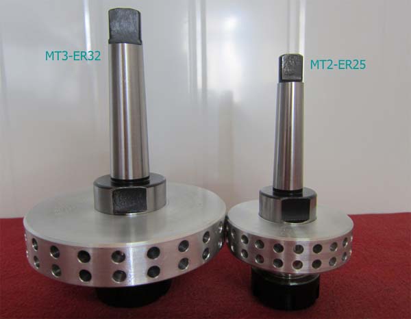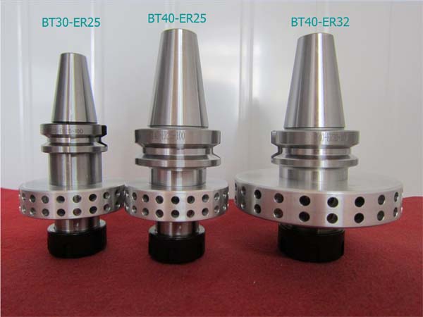 專用散熱翼刀柄不僅可以夾緊熱熔鉆頭,保證熱熔鉆頭高速旋轉(zhuǎn)的同心度,而且擁有其他的重要功能:特殊材質(zhì)的鋁合金散熱圓盤開有很多小孔,將產(chǎn)生的熱量快速的散發(fā)掉,可以降低由鉆孔所產(chǎn)生的高溫(連續(xù)工作時溫度達到600-800度),保證鉆床主軸不會因過高的溫度而損壞。 我們可提高以下規(guī)格的散熱刀柄配合鉆床設(shè)備使用:1.手動鉆床:可提供MT2(莫氏2#錐度)和MT3(莫氏3#錐度)兩種莫氏錐度,和Ø16、Ø20mm圓柱型散熱刀柄。 2.CNC 加工中心: 可提供BT30,BT40, HSK A-63, ISO30, ISO40, SK40和CAT40等類型的散熱刀柄